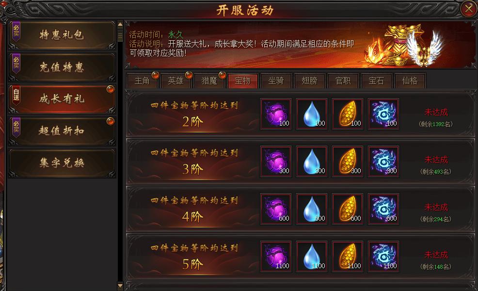 说明:活动期间宝物等阶满足条件即可领取大量奖励