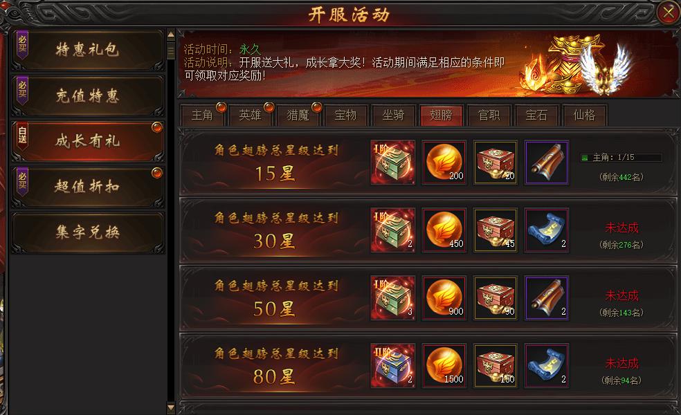说明:活动期间翅膀等阶满足条件即可领取大量奖励